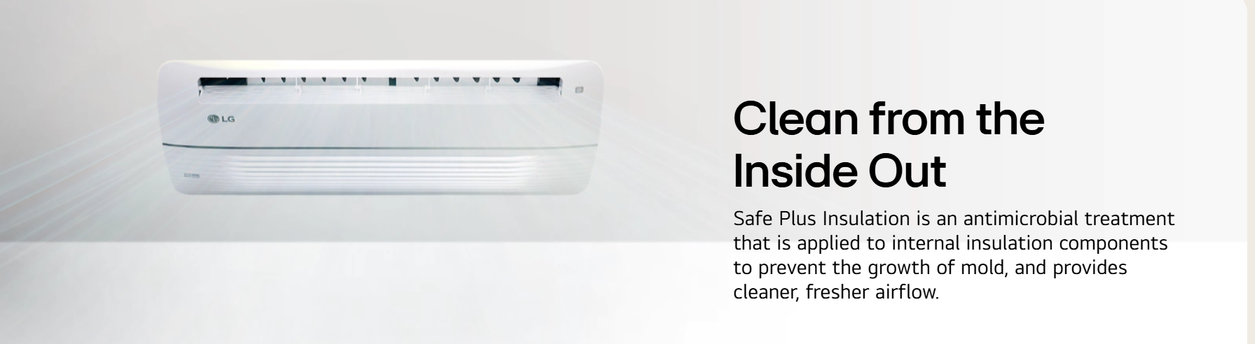 Safe Plus Insulation is an antimicrobial treatment that is applied to internal insulation components to prevent the growth of mold, and provides cleaner, fresher airflow.