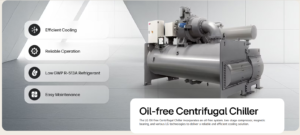 LG Oil-free Centrifugal Chiller is equipped with non-contact Magnetic Bearing technology, no lubrication loss and enhancing efficiency. Additionally, the built-in online UPS provides stable operation even during power outages.
